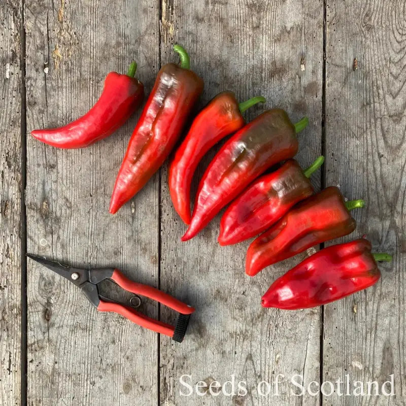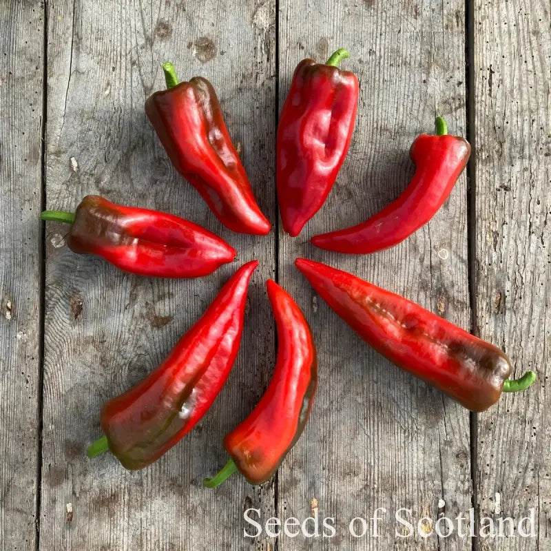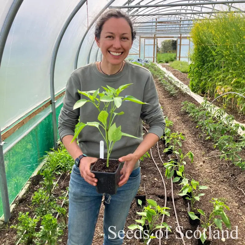 Peppers will do best when grown undercover in Scotland. Sow indoors into small pots or seed flats using a heated propagator or sunny windowsill in Feb/March, no later than April. Peppers generally grow slightly slower than Tomatoes so they should be sown slightly earlier if possible. Transplant into larger pots once true leaves emerge. Aim to transplant into the final growing location after the last frost.