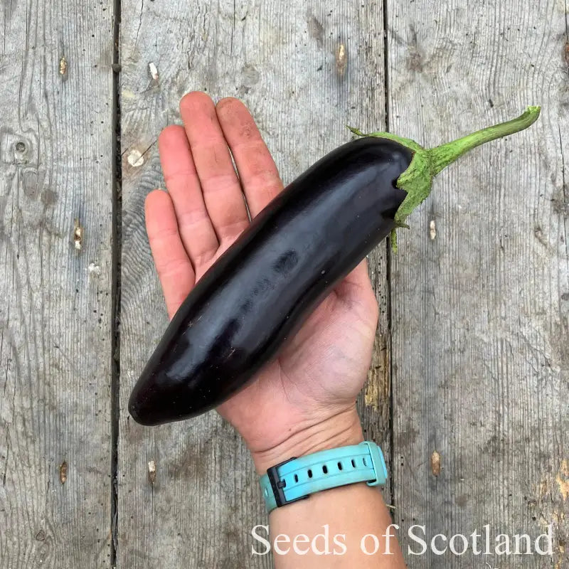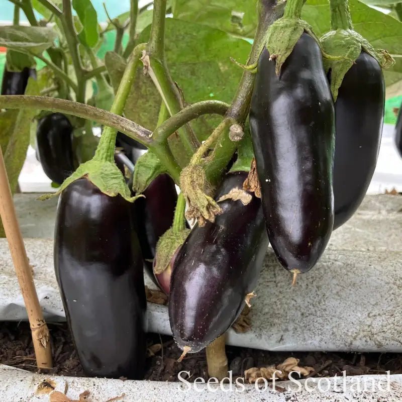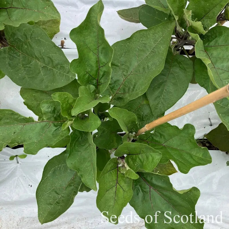 Aubergines will do best when grown undercover in Scotland. Sow indoors into small pots or seed flats using a heated propagator or sunny windowsill in Feb/March, no later than April. Aubergines generally grow slightly slower than Tomatoes so should be sown slightly earlier if possible. Transplant into larger pots once true leaves emerge. Aim to transplant into final growing location after the last frost, ideally once night-time temperatures are up to around 10 °C.